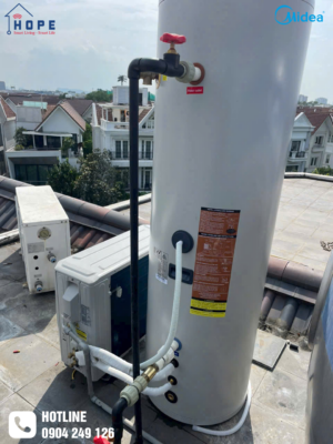 Hợp Nhất Smart Home just completed the installation of a central hot water system with a 200L Midea heat pump, providing a solution that saves energy, operates smoothly and ensures continuous hot water – at the same time for the whole family, no longer having to wait for hot water from the previous user.