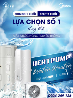 Giải pháp: 2 Máy bơm nhiệt (Heatpump) 2 khối 300L thương hiệu Midea